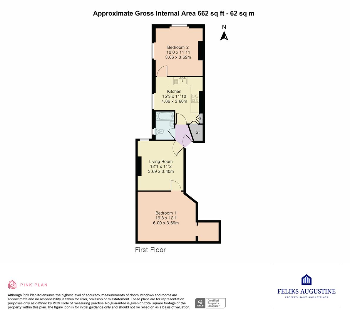Placed in an excellent location and spanning 62 m2, this property features a spacious reception room, two generously sized double bedrooms, and a well appointed kitchen with dining area.