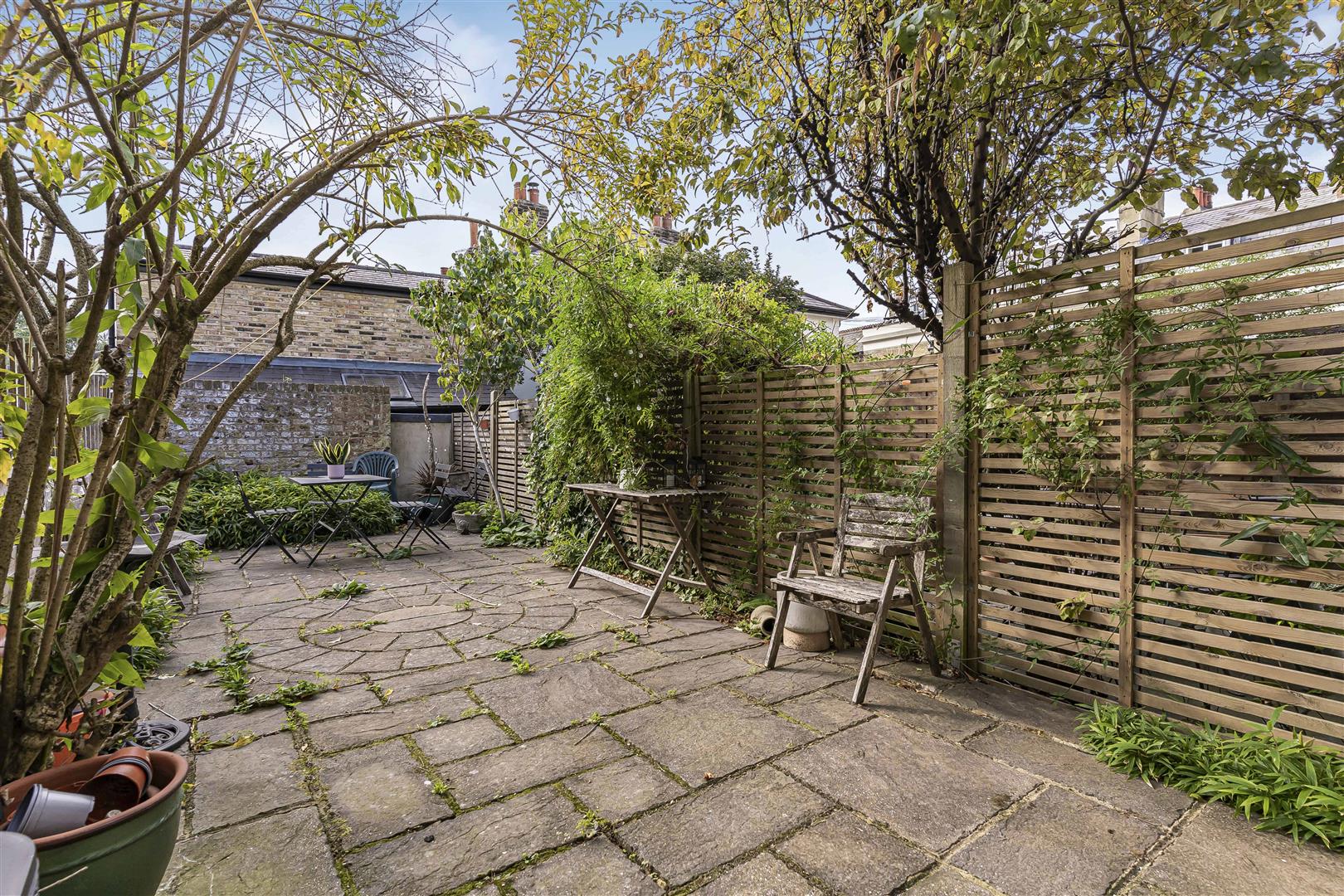The house has a delightful courtyard garden, providing a lovely outdoor space for relaxation or entertaining guests. The garden is a true gem, offering a tranquil escape amidst the hustle and bustle of city life.
